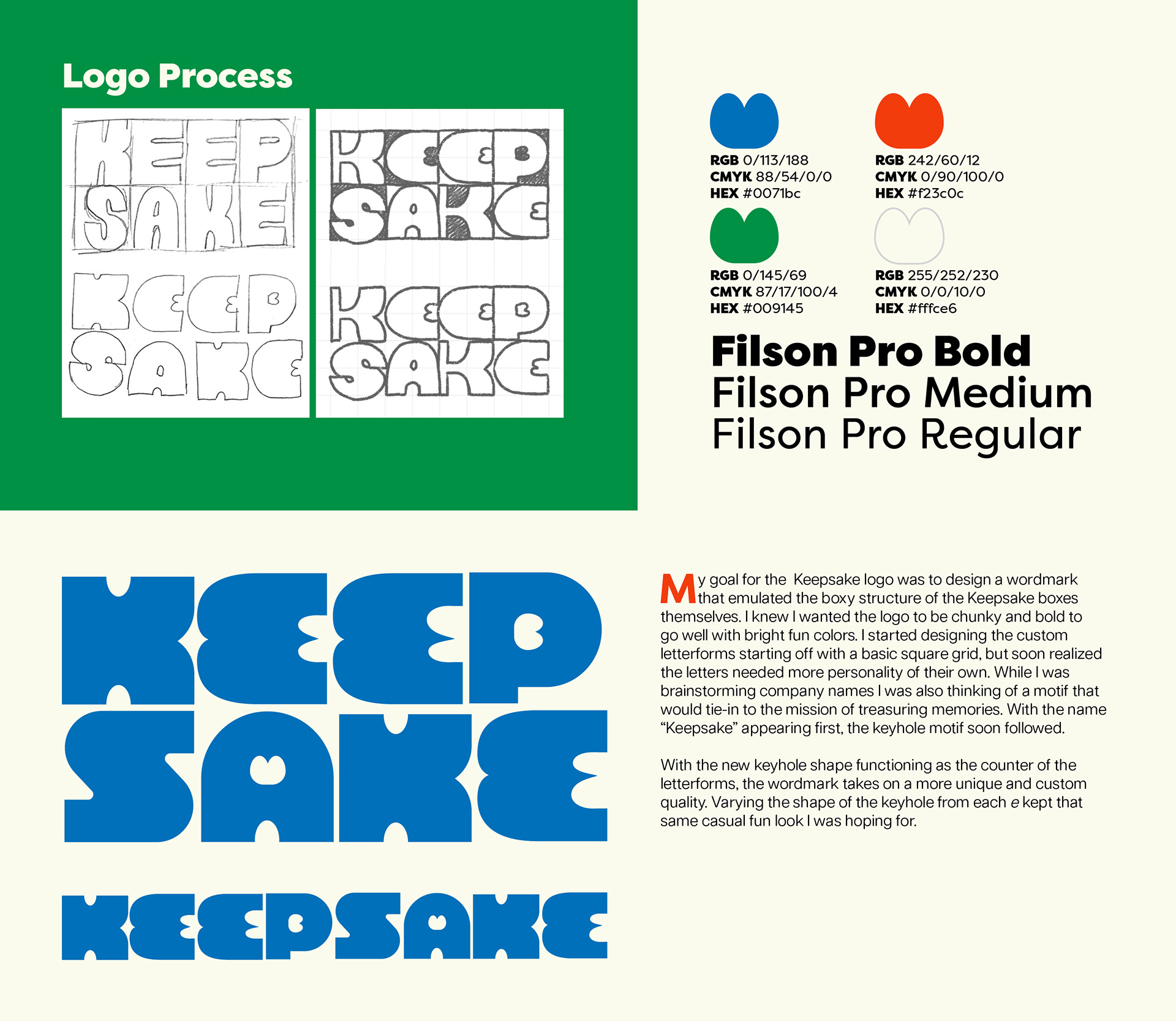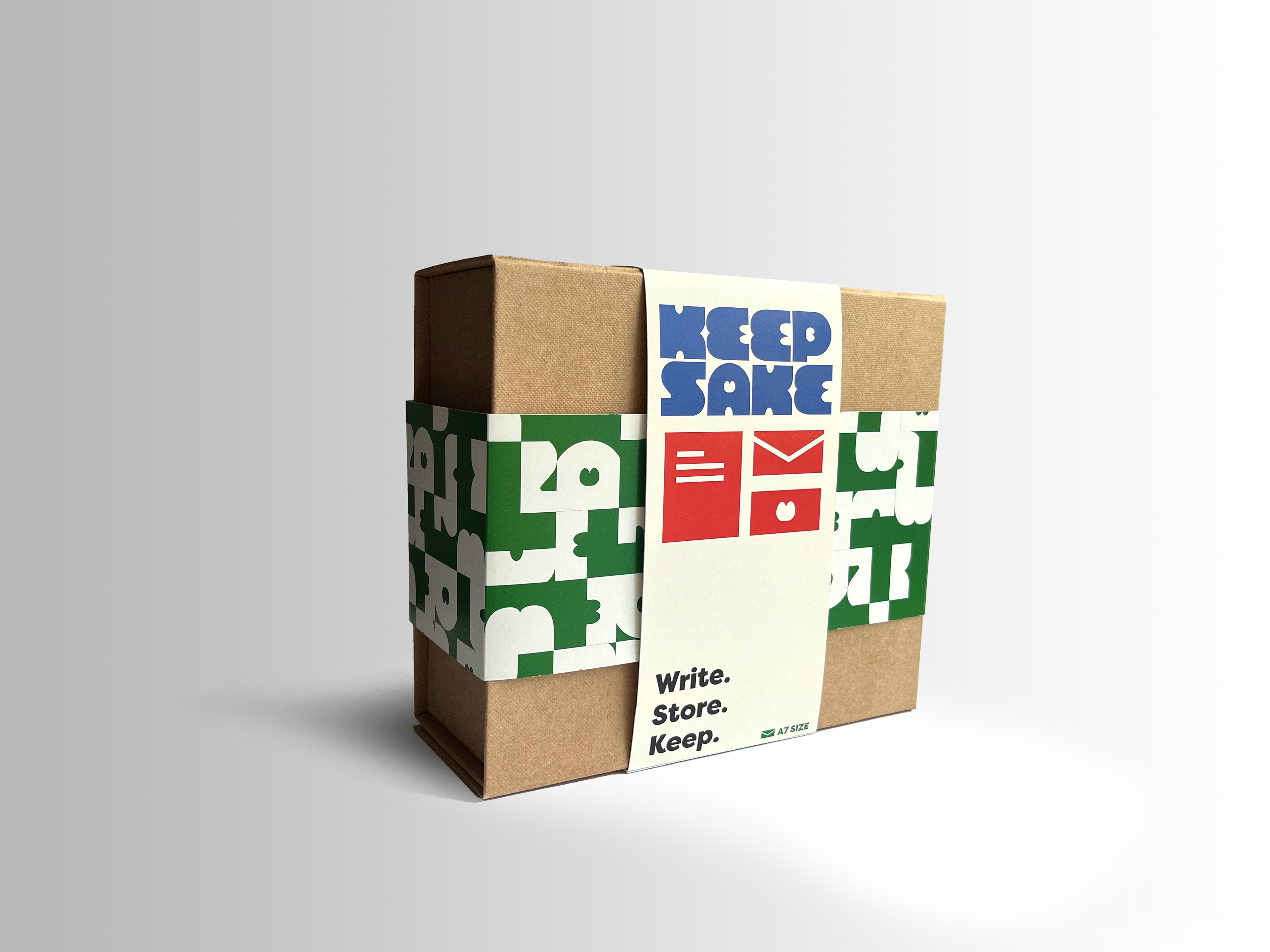 Conceptual packaging design for "Keepsake" a stationery company specializing in stationery storage.