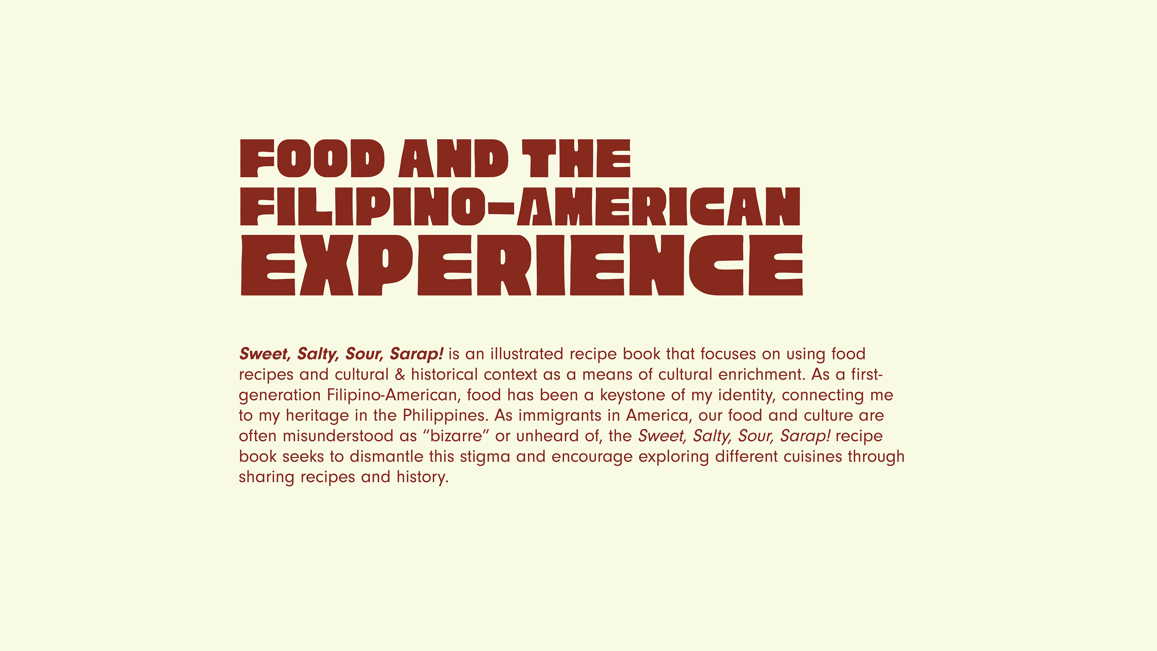 An illustrated Filipino-American recipe book focused on sharing recipes with cultural & historical context.